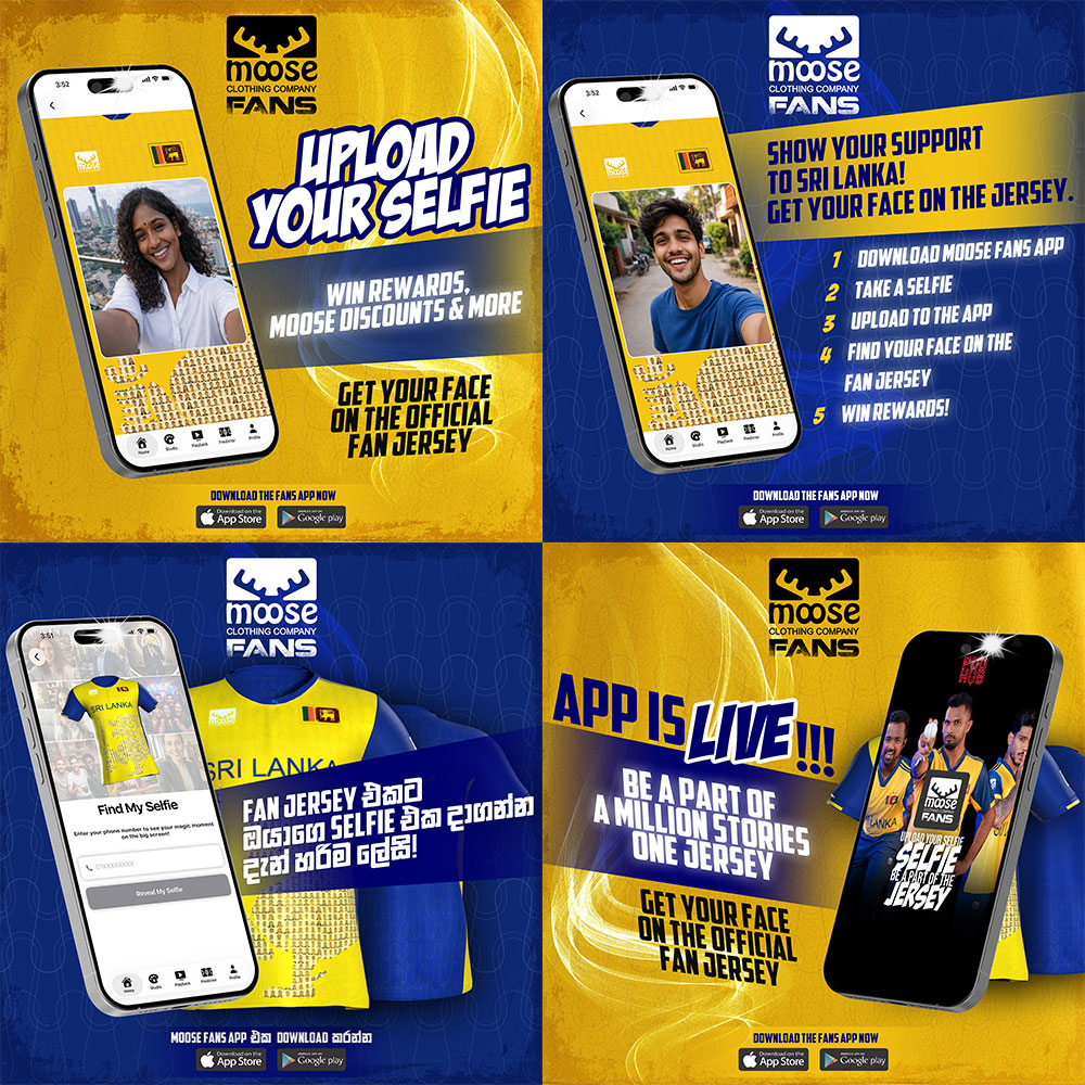 The Image is then integrated into the print of the official Sri Lanka Cricket Fan Jersey. The user is also allowed to search for their image on the Jersey through the mobile application, which also features a score predictor challenge, exclusive interviews, & access to Moose merchandise.